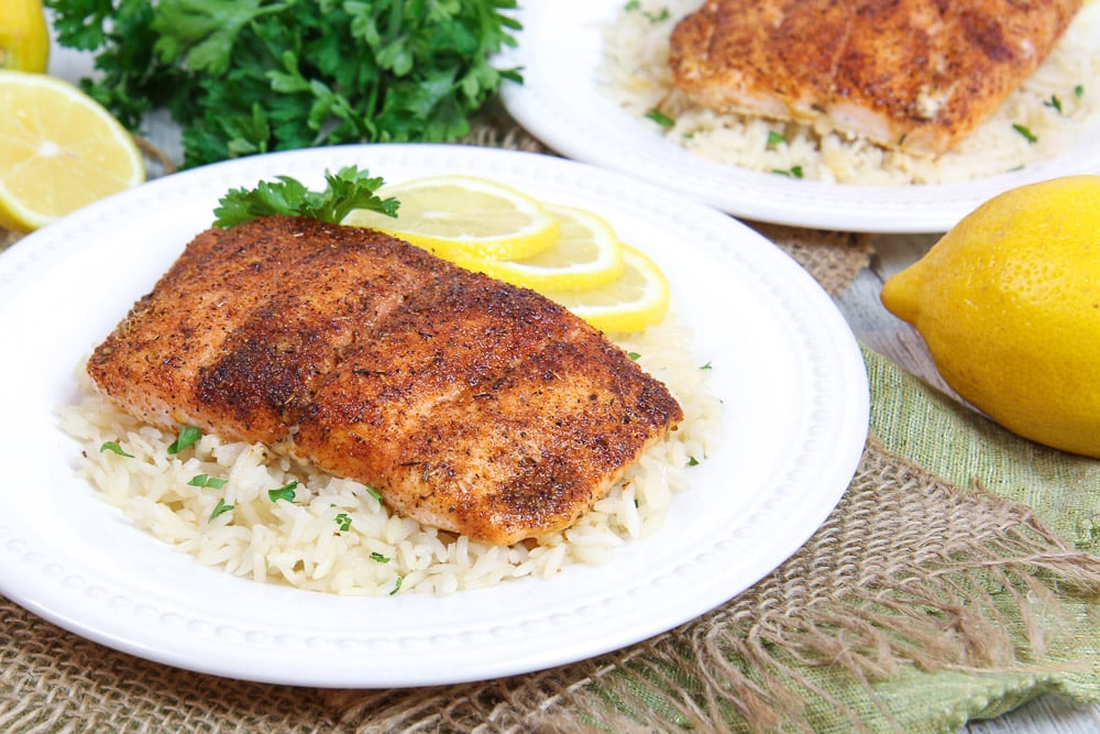 My recipe for blackened fish is healthy because it's oven baked and uses just a little butter. This is completely guilt-free and good for your easy healthy salmon recipe.