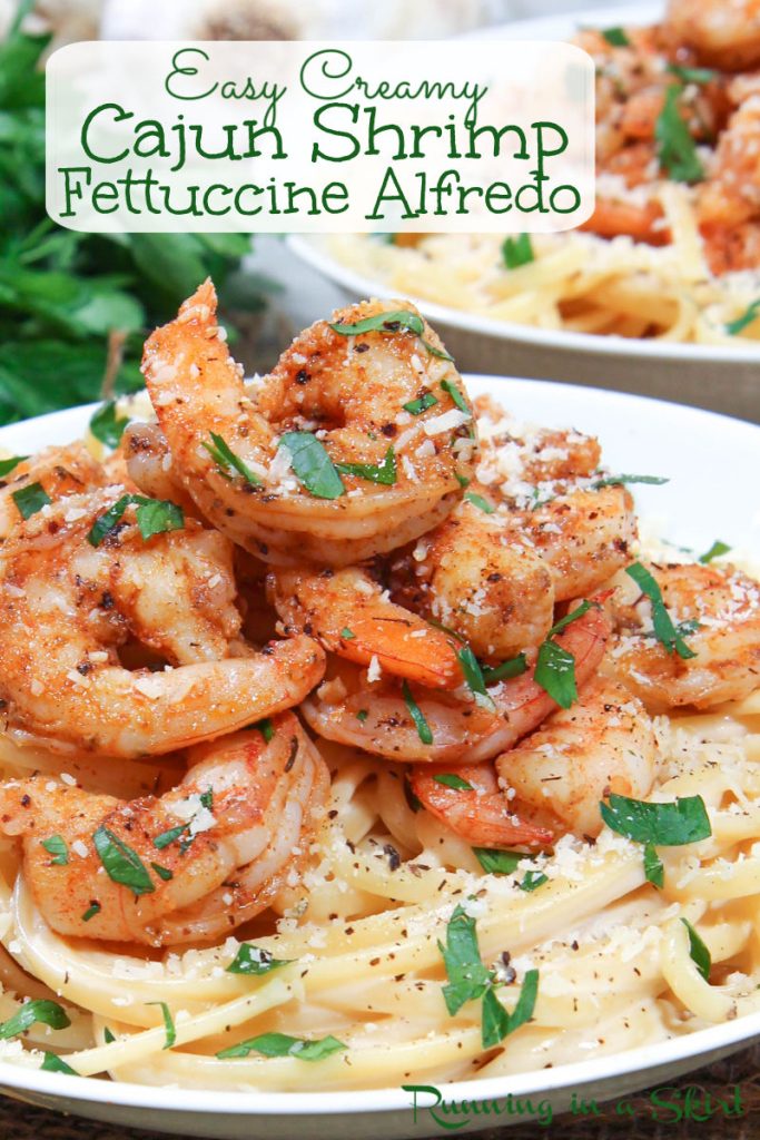 Cajun Shrimp Alfredo with Cajun Shrimp and Cajun Seasoning is delicious and creamy. This restaurant-inspired dinner is made with some healthy swaps and a simple homemade alfredo sauce and lots of rich parmesan cheese. Made in less than 30 minutes this easy meal is perfect for weeknights but still fancy enough for a weekend dinner party.
