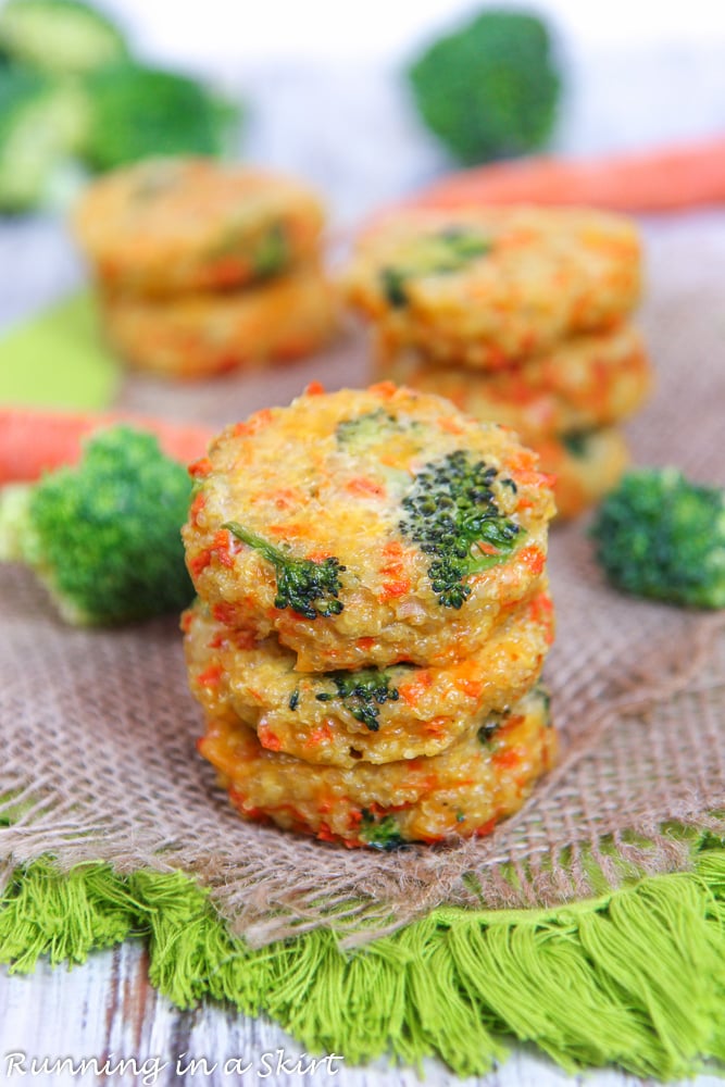 Turns out these Broccoli Quinoa Patties are the perfect quinoa patties for toddlers! These little golden bites have lots of hidden veggies for the twins and protein from the quinoa, egg, and cheese. They are such a yummy vegetarian meal that my twins both loved.