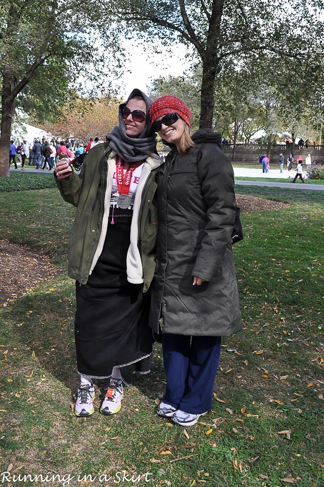 I come out of the official marathon area and my favorite people in the world are waiting. They have coats and blankets for me to warm up. I even get great big hugs, even though I’m sure I am disgusting. It feels so awesome to be done with the marathon.
