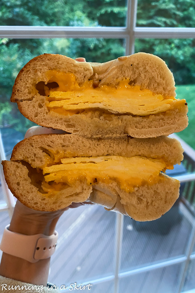All the bagels! We picked up some fresh bagels from Joey's Bagels the other day and loved them. The boys demolished their own sandwich too.