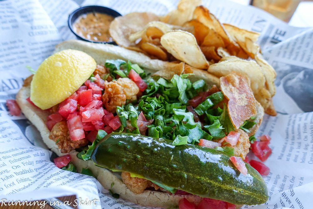 We were then starving, so we popped into Salty Dog for a fabulous lunch. The Hubs and I shared a Shrimp Po-Boy...