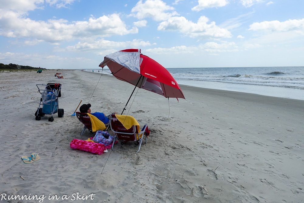 After breakfast the Hubs set up our beach spread. He looks at the sun and burns, so we need this crazy umbrella even this time of year. He's so good at getting it all set up.