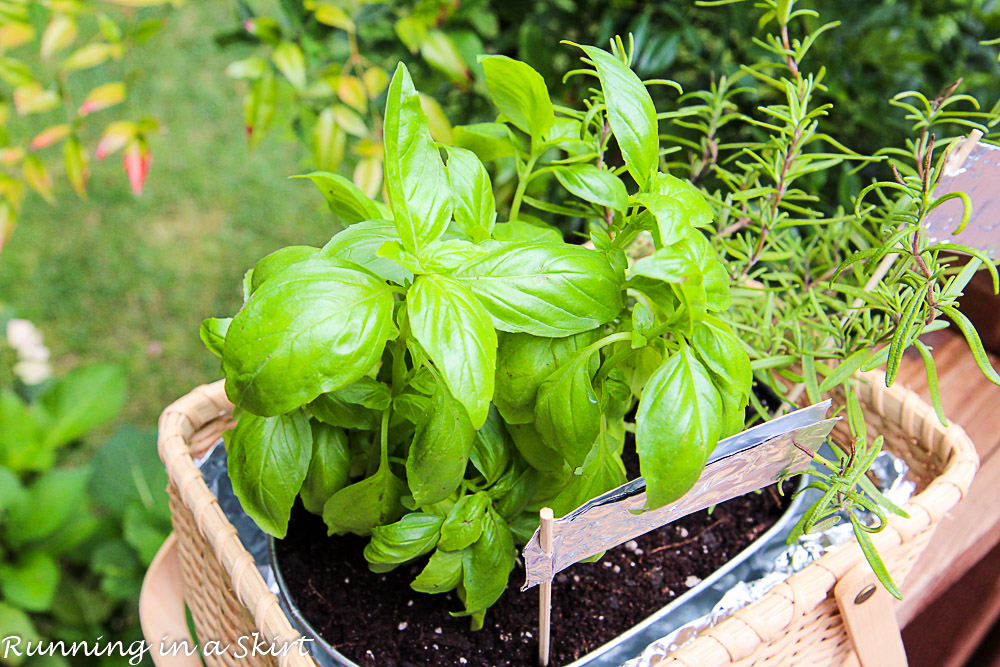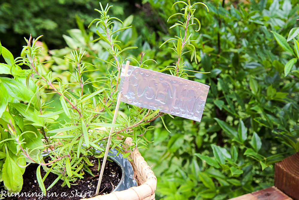 I then planted my herbs! I used rosemary and basil because I use them most in my kitchen, but feel free to use any herb.