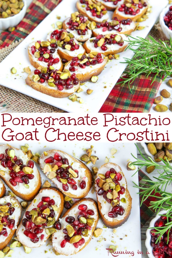 This crostini looks so amazing, I swear I want to sing Christmas songs just looking at it! Pomegranate, pistachios and goat cheese just sound amazing!