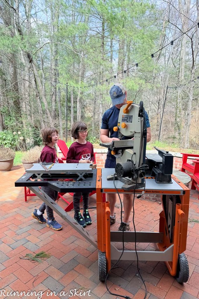 Another fun thing we did this week was start the boys pinewood derby cars for Cub Scouts. The Hubs used his saw to cut them and now we have to work on the design of the cars. They are loving all these activities.