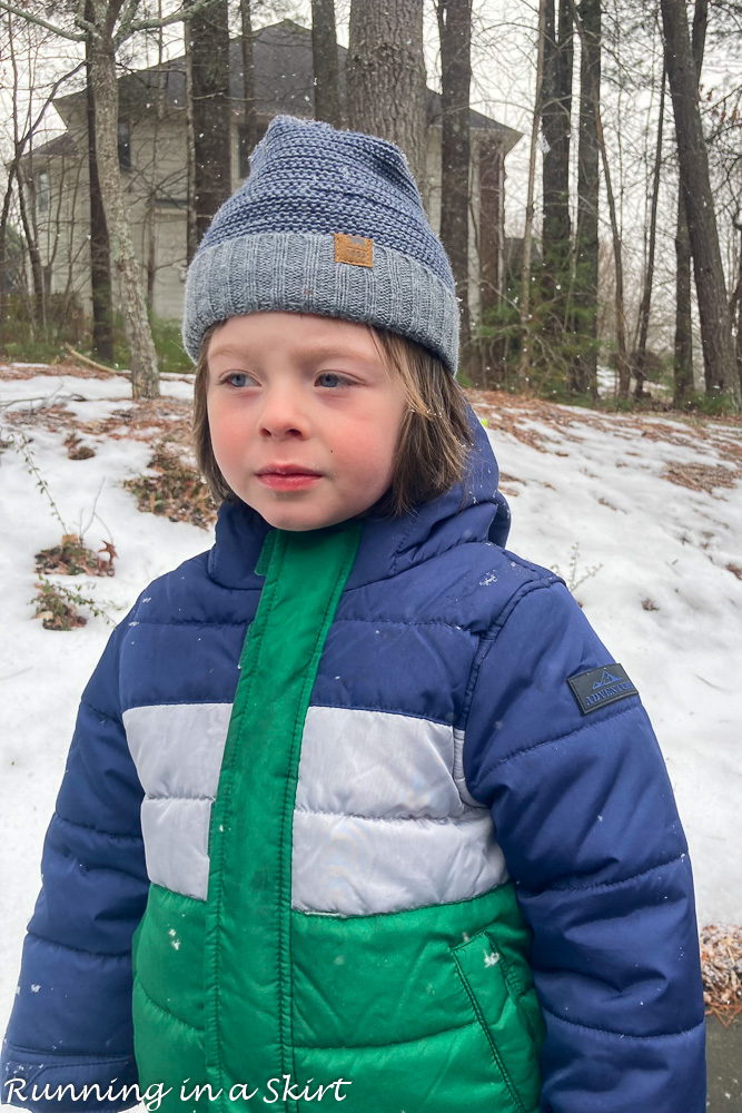 But since everyone was feeling a bit better over the weekend we did get outside a touch. We even had a little more snow on Friday that they played in.