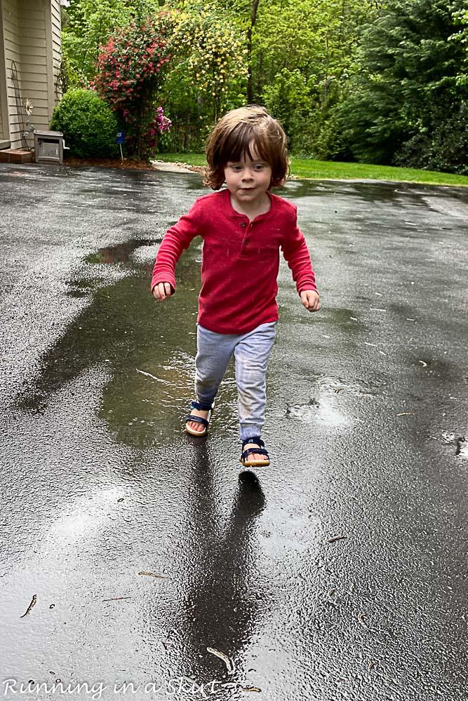 And finally, since it rained a lot this week, we had some serious fun splashing through some puddles! You can buy the toys all the toys in the world and sometimes the most fun is free. 🙂